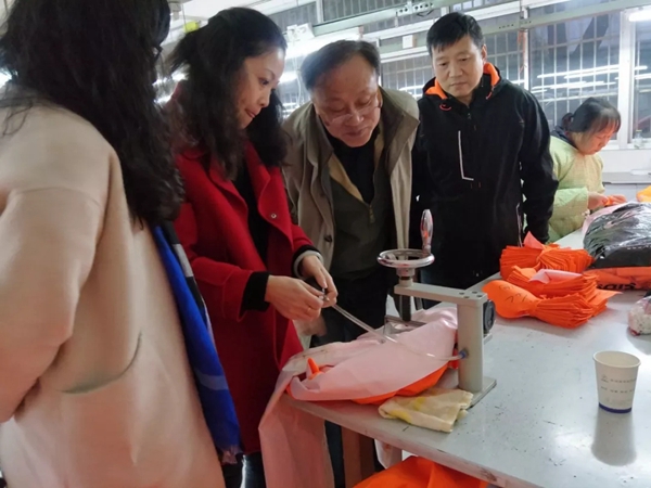 现场,博迪嘉相关负责人随机抽取部分产品质检其防水性、透气性,与协会领导共同见证了博迪嘉过硬的品质。