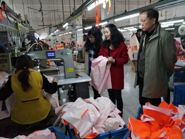 座谈会后,在博迪嘉总经理的陪同下,江苏劳保协会来访领导参观了博迪嘉生产工厂。